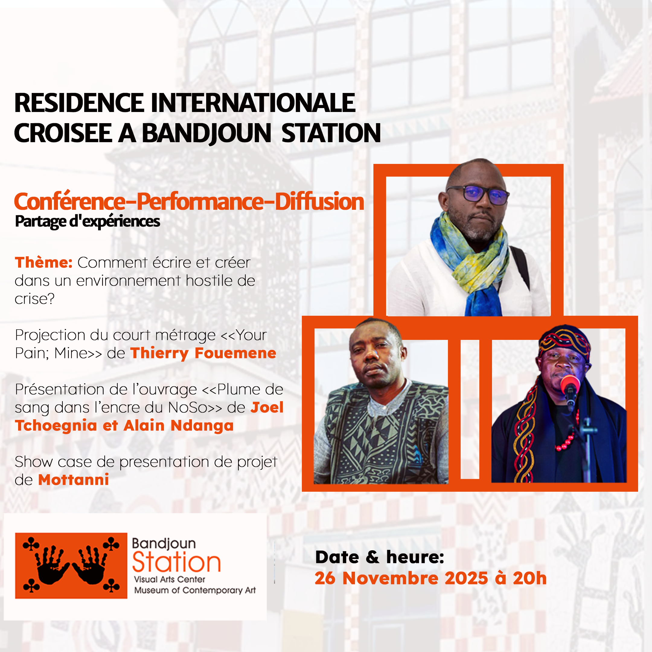 I am deeply honored that this presentation will be held in the presence of an incredible gathering of artistic luminaries, including the esteemed Thierry Foumene and Alain Ndaga. We are also blessed to share this space with fellow artists from Belgium, Congo, and Cameroon, creating a powerful, cross-continental dialogue through art.